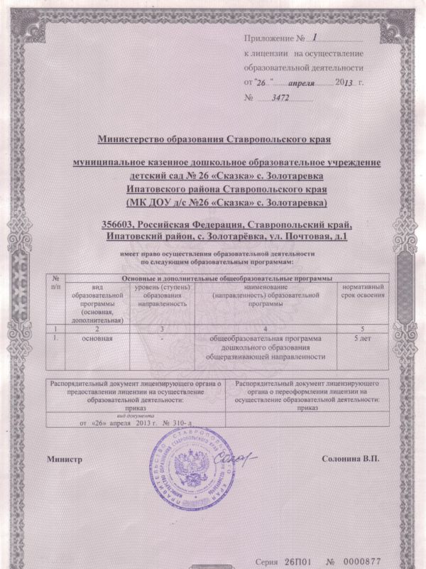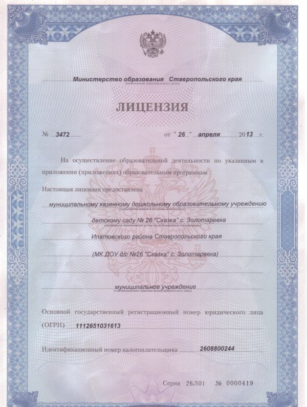 МК ДОУ Д/С №26 "Сказка" с.Золотарёвка